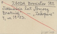 ZGODA Bronis³aw 1911 Jedena¶cie lat "Pomocy Bratniej".