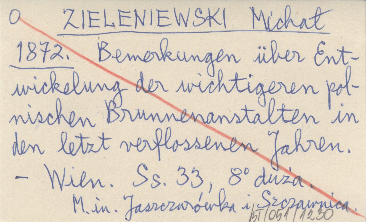 ZIELENIEWSKI Michał 1872 Bemerkungen über Entwickelung der wichtigeren polnischen Brunnenanstalten in den letzt verflossenen Jahren.