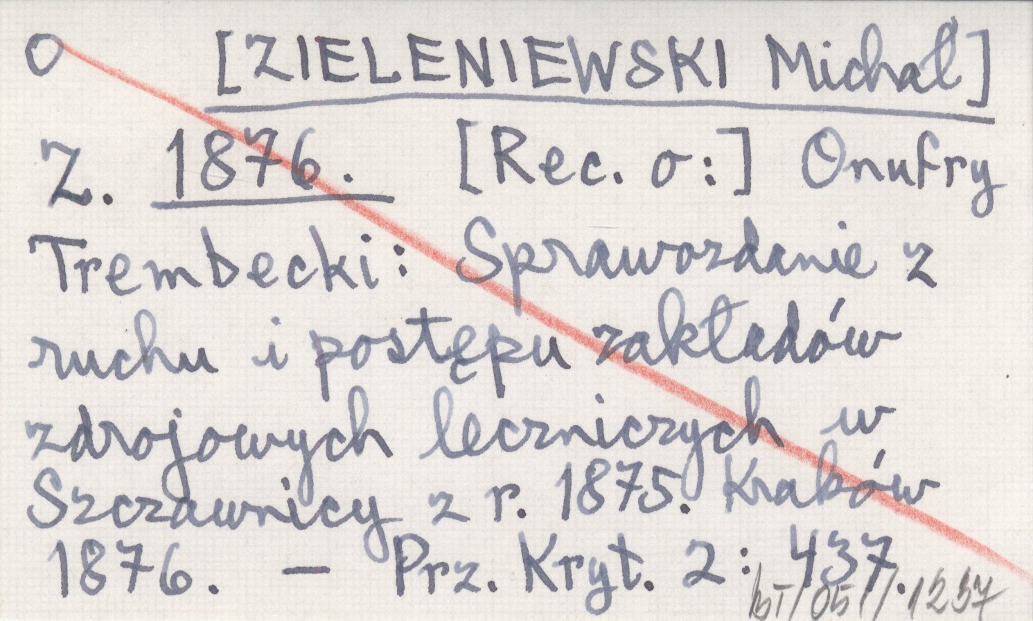 Z. [ZIELENIEWSKI Michał] 1876 [Rec. o:] Onufry Trembecki: Sprawozdanie z ruchu i postępu zakładów zdrojowych leczniczych w Szczawnicy z r. 1875. Kraków 1876.