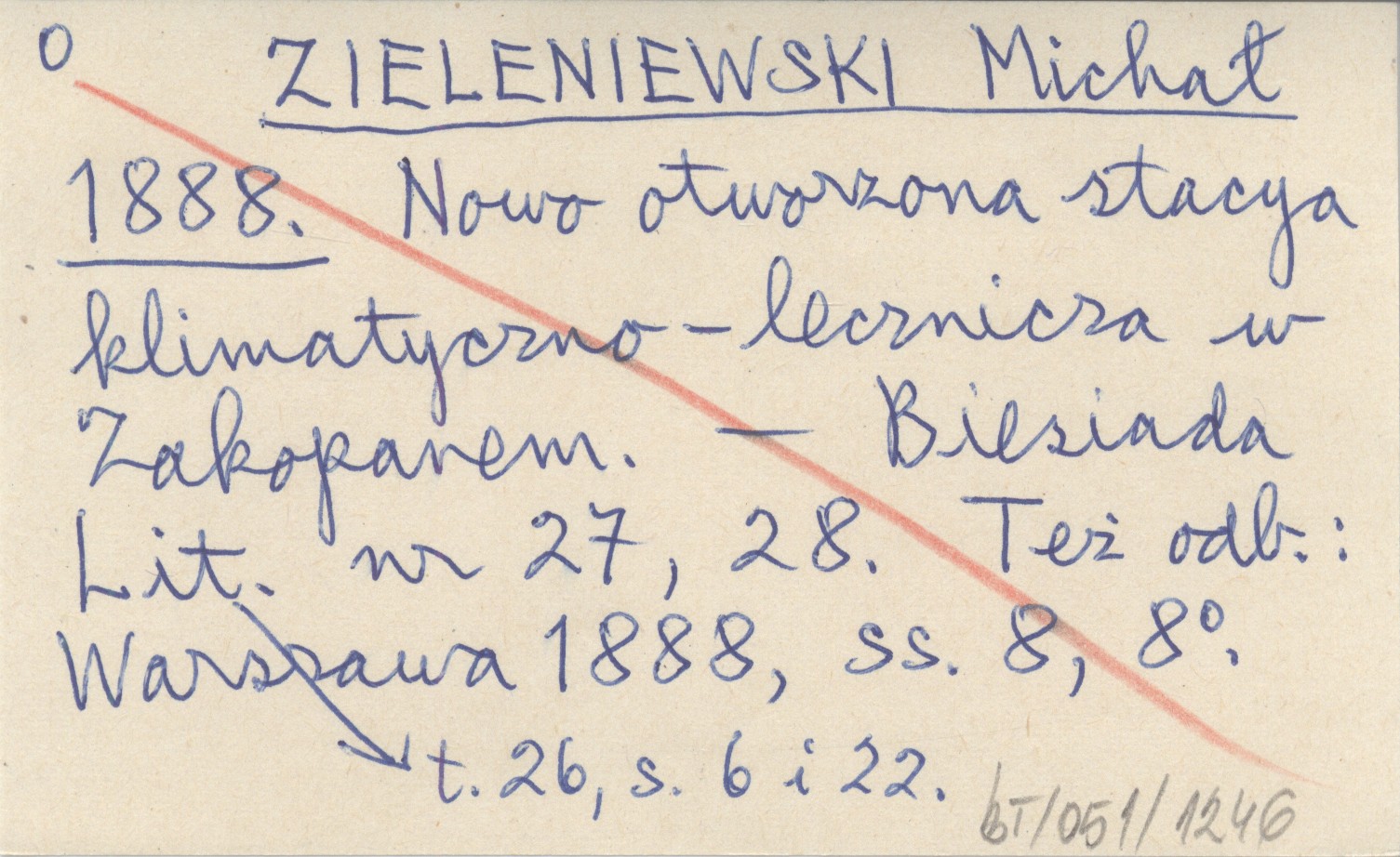 ZIELENIEWSKI Michał 1888 Nowo otworzona stacya klimatyczno-lecznicza w Zakopanem.