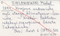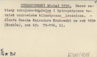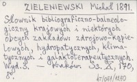 ZIELENIEWSKI Michał 1891 Słownik bibliograficzno-balneologiczny krajowy i niektórych obcych zakładów: zdrojowo-kąpielowych, hydropatycznych, klimatycznych i galaktoterapeutycznych.