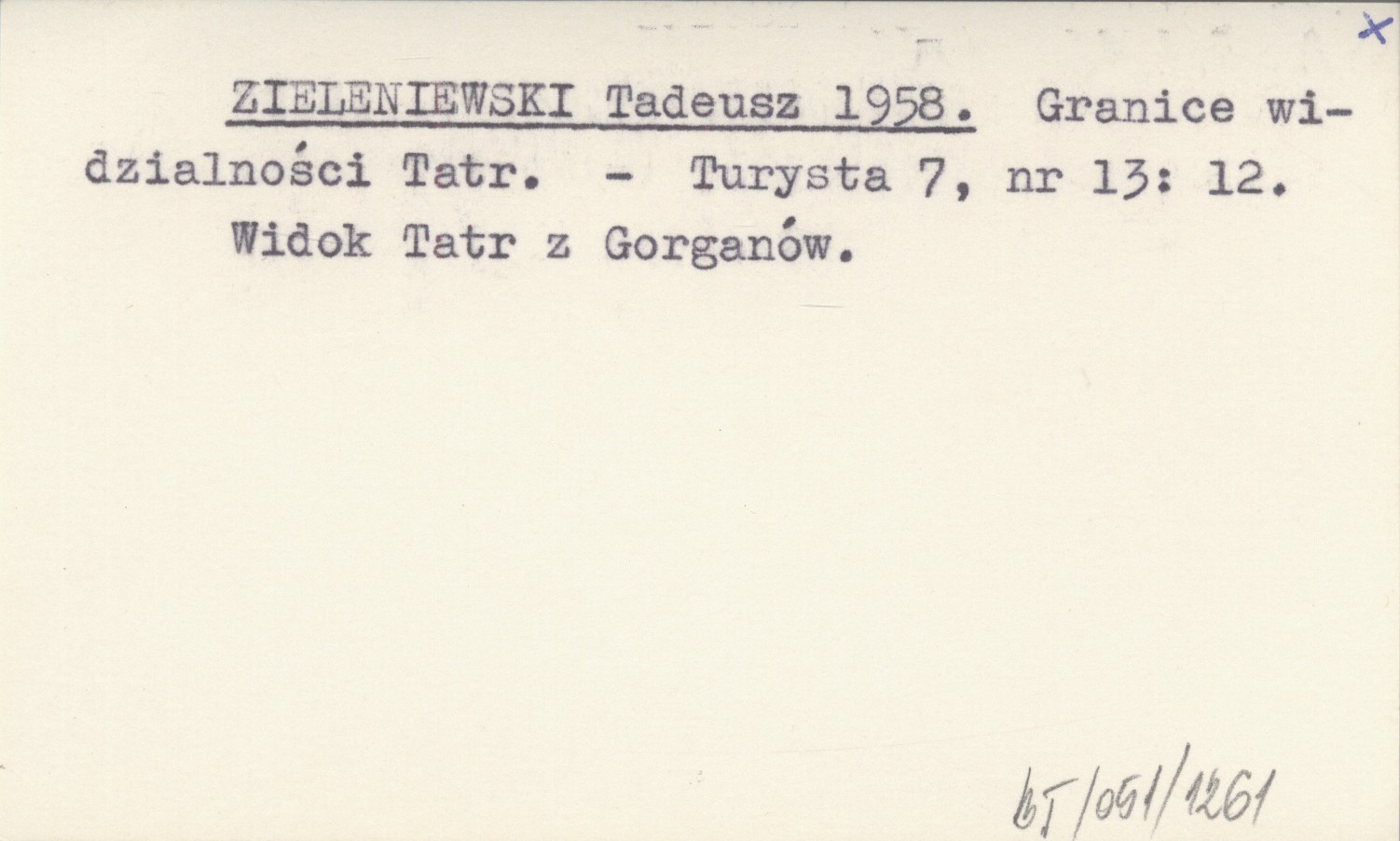 ZIELENIEWSKI Tadeusz 1958 Granice widzialności Tatr.