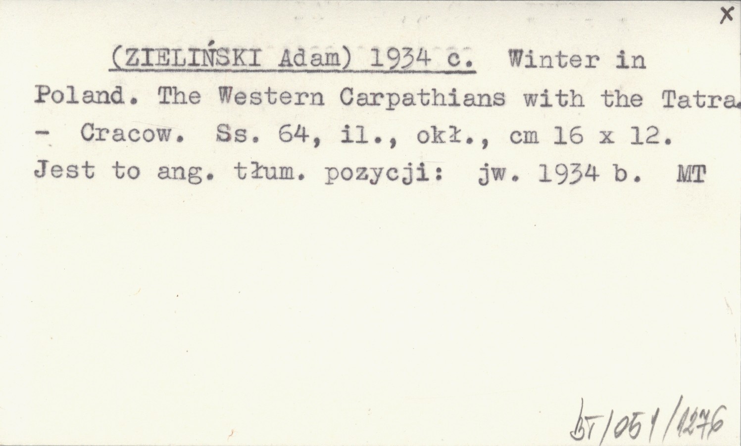 Cracow , 64 s., il., okł., 16x12 cm. Jest to angielskie tłumaczenie pozycji: jw. 1934 b.