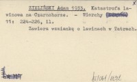 ZIELIŃSKI Adam 1933 Katastrofa lawinowa na Czarnohorze.