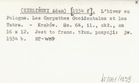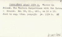 [ZIELIŃSKI Adam] RED: ZIELIŃSKI, Adam. ; 1934 b Zima w Polsce. Cz. I: Karpaty Zachodnie wraz z Tatrami.