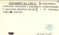 CHMIELEWSKI Jan 1958 a [O gospodarce, badaniach naukowych i planowaniu przestrzennym w regionach górskich Polski.]