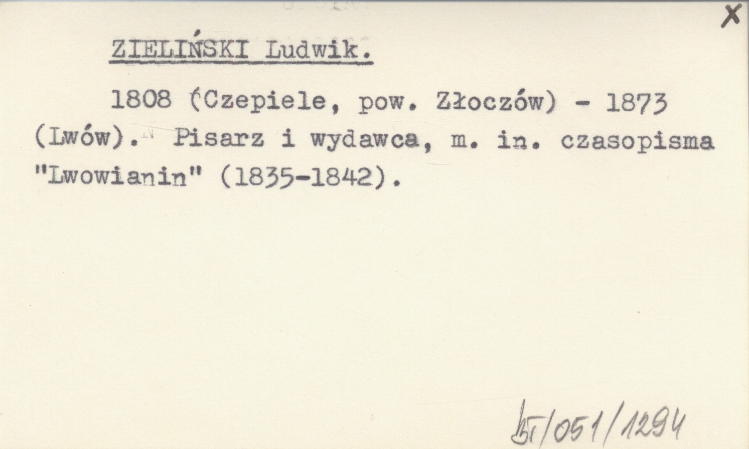 1808 (Czepiele, pow. Złoczów) - 1873 (Lwów). Pisarz i wydawca, m. in. czasopisma "Lwowianin" (1835-1842).