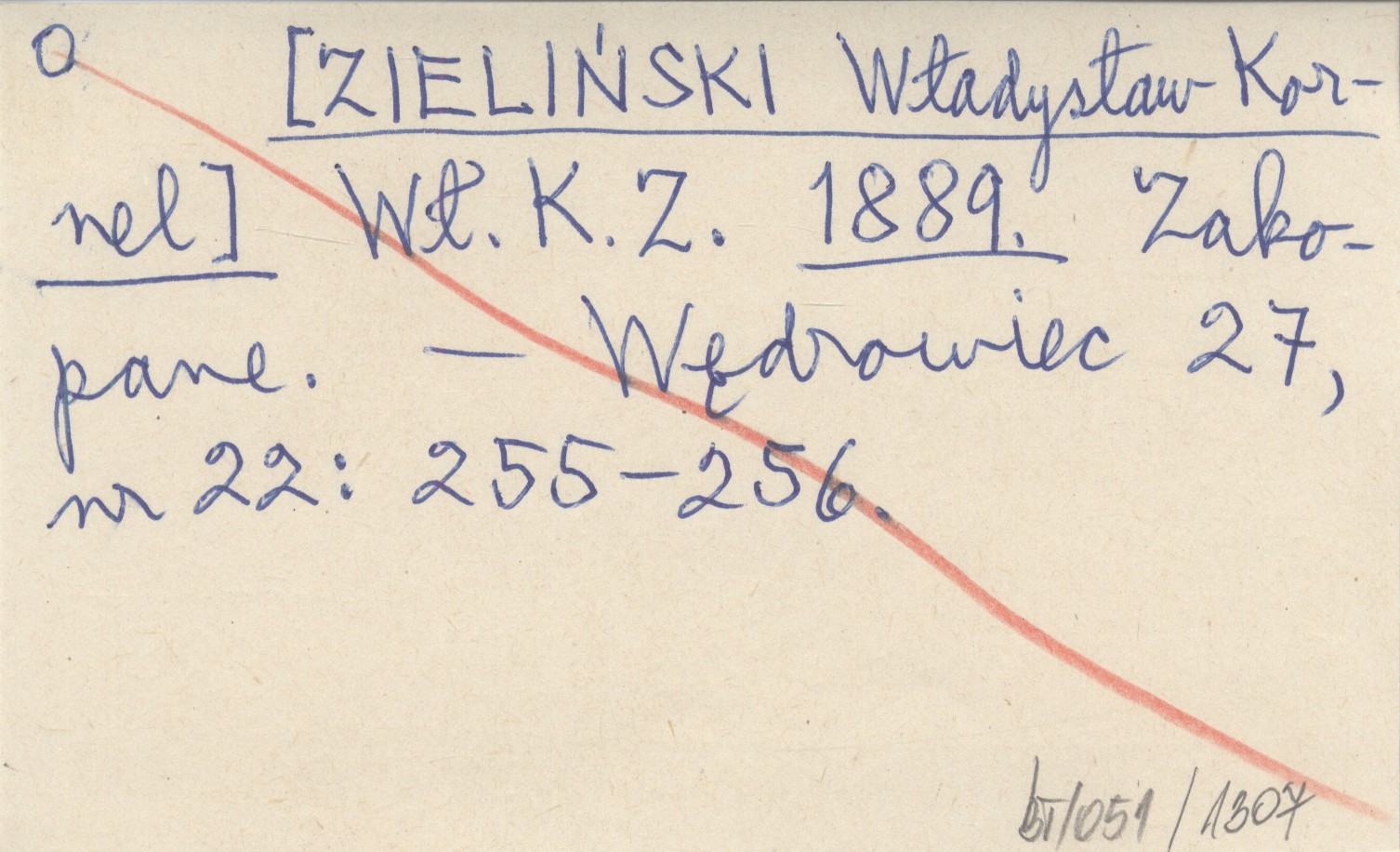 Wł. K. Z. [ZIELIŃSKI Władysław Kornel] 1889 Zakopane.