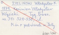 ZIELIŃSKI Władysław K. 1879 Kazimierz Władysław Wóycicki.