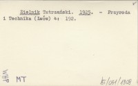 Zielnik tatrzański i zbiory geologiczne z Tatr. 1925 a
