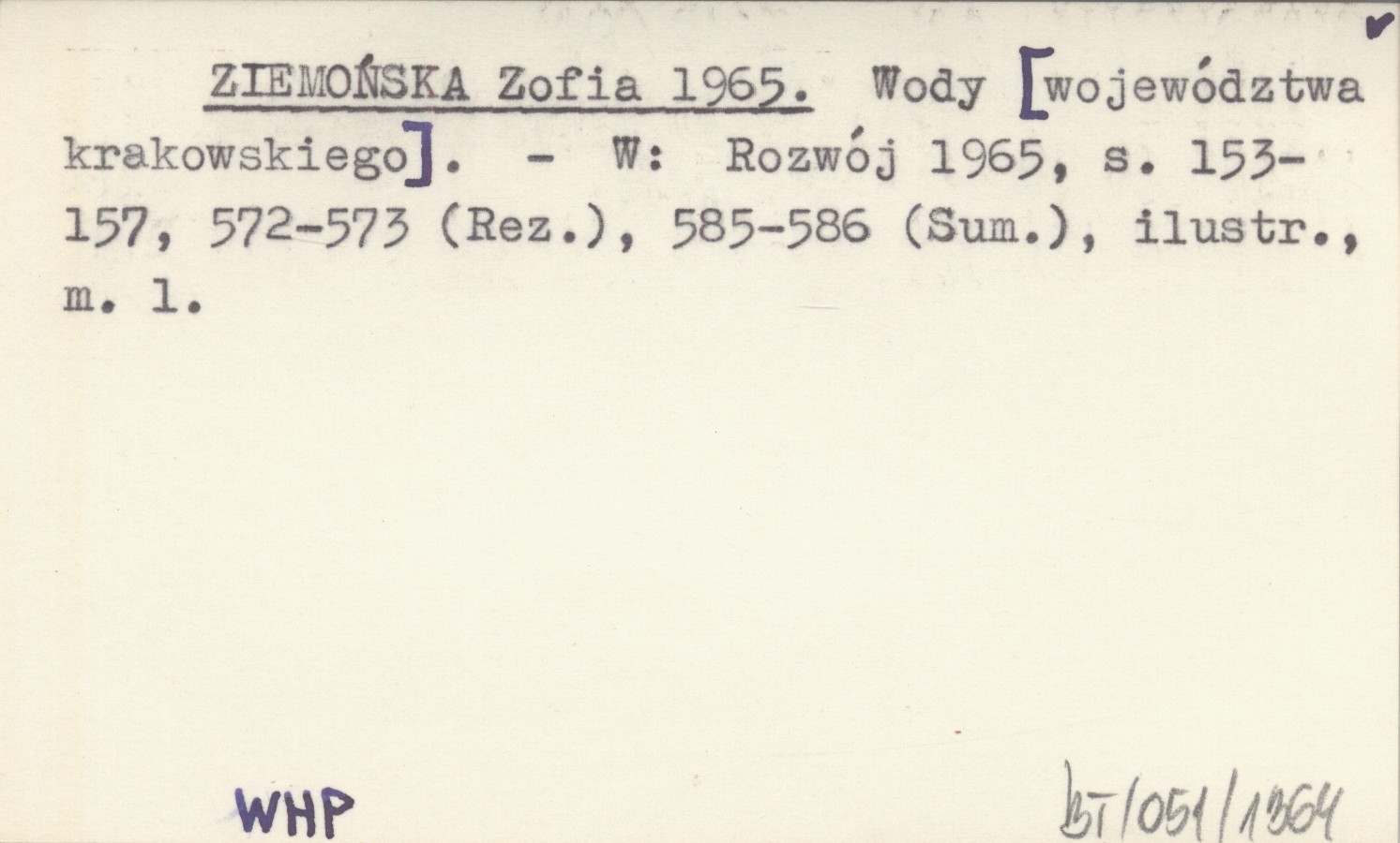 ZIEMOŃSKA Zofia 1965 Wody [województwa krakowskiego.]