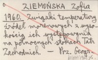 ZIEMOŃSKA Zofia 1960 Związki temperatury źródeł morenowych z wysokością ich występowania na północnych stokach Tatr Zachodnich.