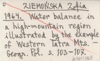 ZIEMOŃSKA Zofia 1964 Water balance in a high-mountain region illustrated by the example of Western Tatra Mts.