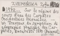 ZIEMOŃSKA Zofia 1972... Sur le régime des cours d'eau des Carpates Occidentales Polonaises.