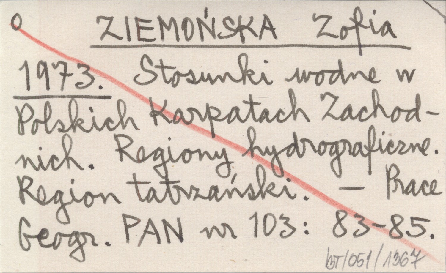 ZIEMOŃSKA Zofia 1973 Stosunki wodne w Polskich Karpatach Zachodnich. Regiony hydrograficzne. Region tatrzański.