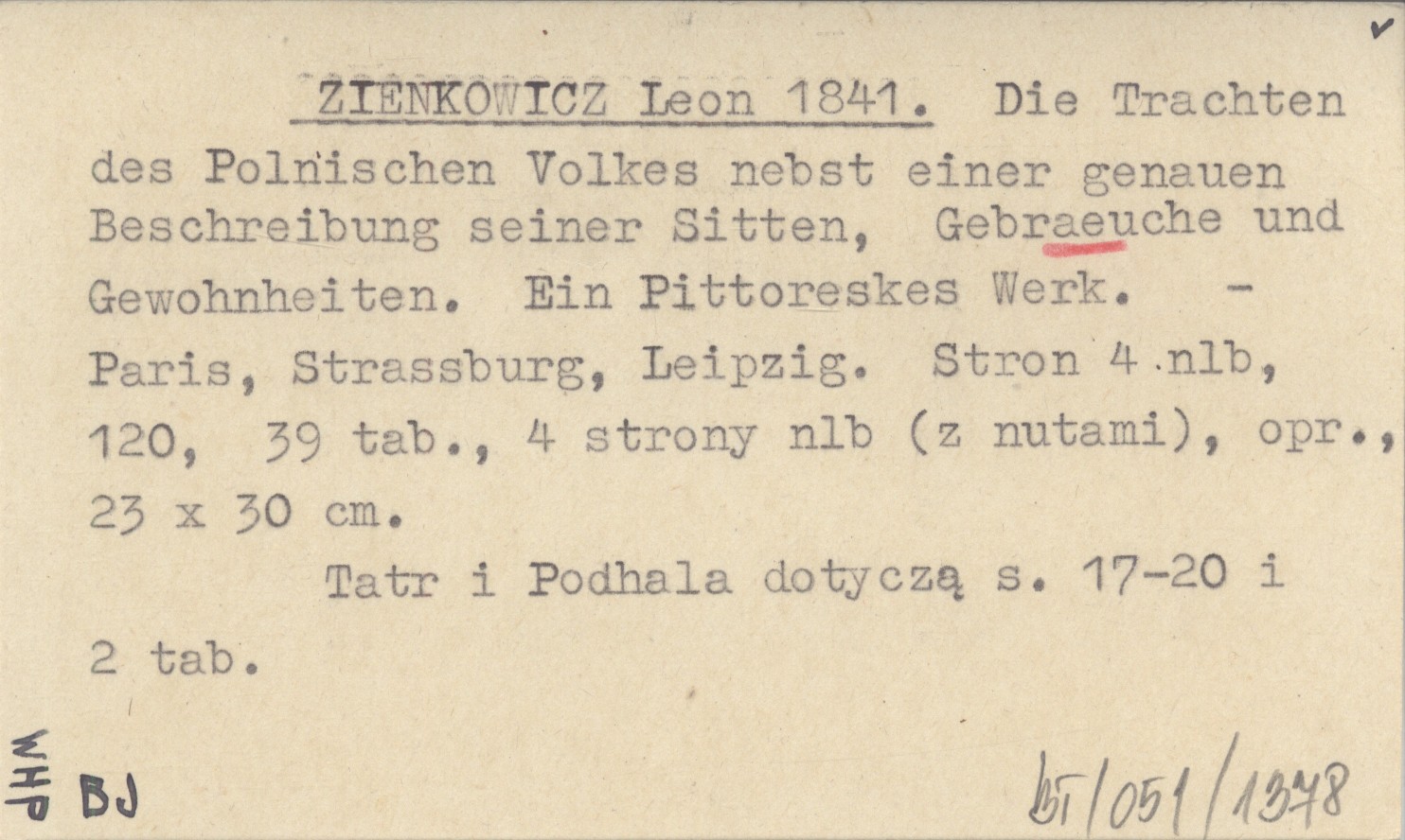 ZIENKOWICZ Leon 1841 Die Trachten des Polnischen Volkes nebst einer genauen Beschreibung seiner Sitten, Gebraeuche und Gewohnheiten. Ein Pittoreskes Werk.