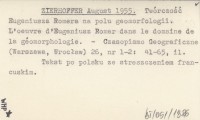 ZIERHOFFER August 1955 Twórczość Eugeniusza Romera na polu geomorfologii. L'oeuvre d'Eugeniusz Romer dans le domaine de la géomorphologie.