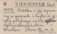 ZIERHOFFER Karol 1959 Ścieżka i jej synonimy w gwarach i historii języka polskiego na tle ogólnosłowiańskich.