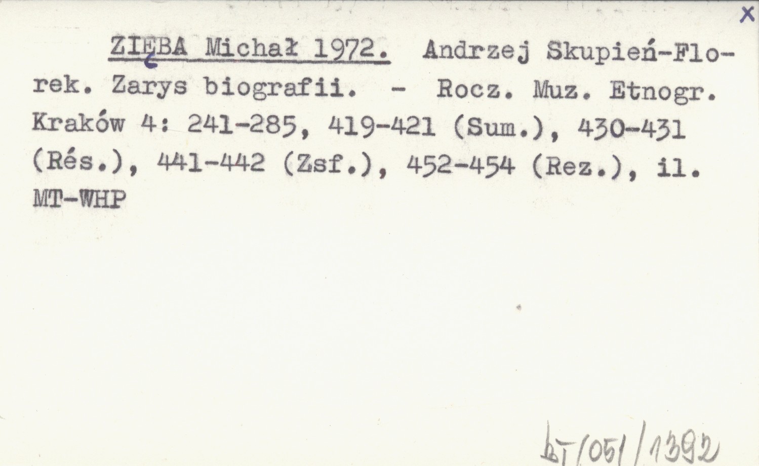 ZIĘBA Michał 1972 Andrzej Skupień-Florek. Zarys biografii.