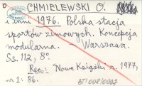 CHMIELEWSKI O. [i in.] ; 1976 Polska stacja sportów zimowych. Koncepcja modularna.