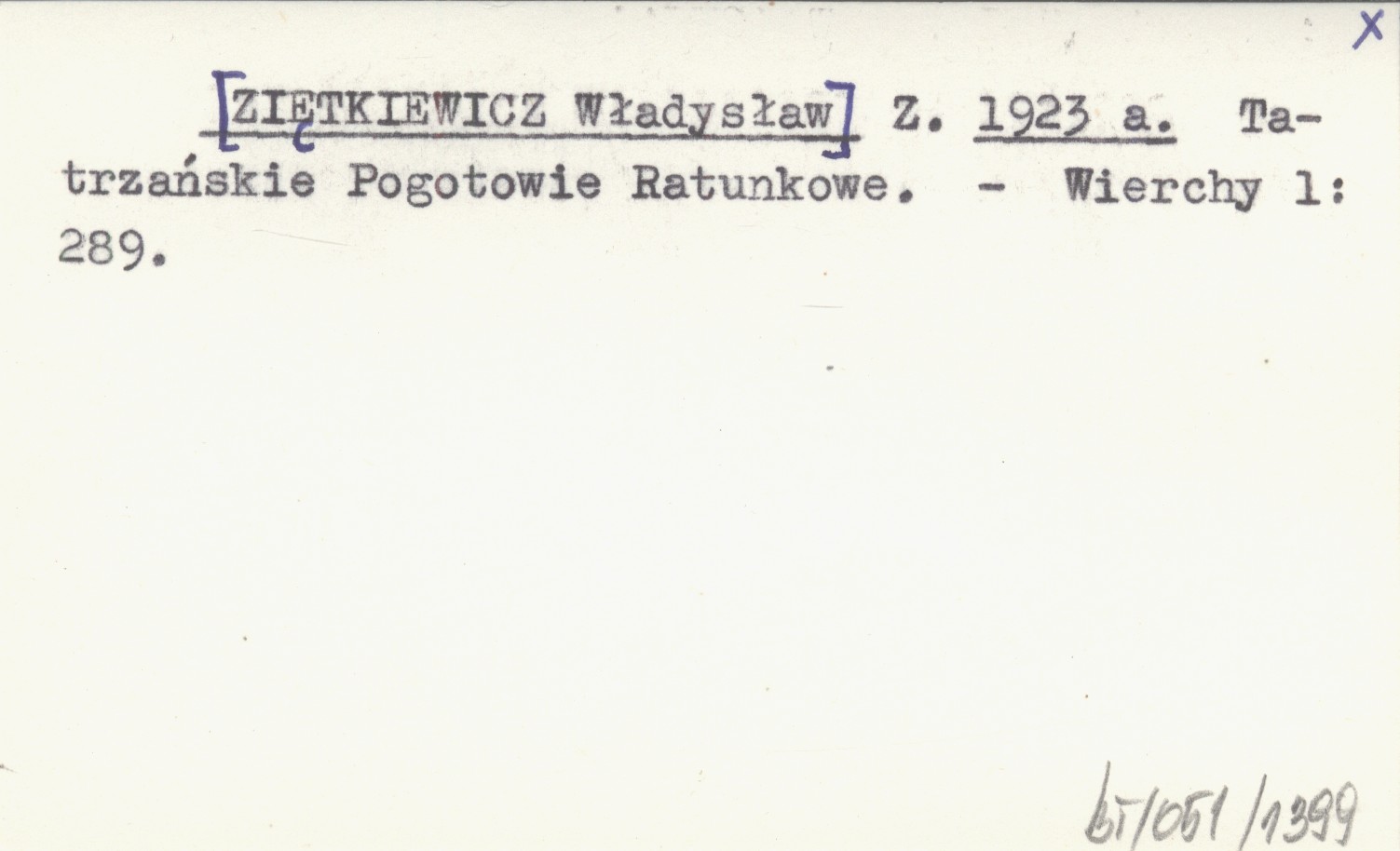 Z. [ZIĘTKIEWICZ Władysław] 1923 a Tatrzańskie Pogotowie Ratunkowe.
