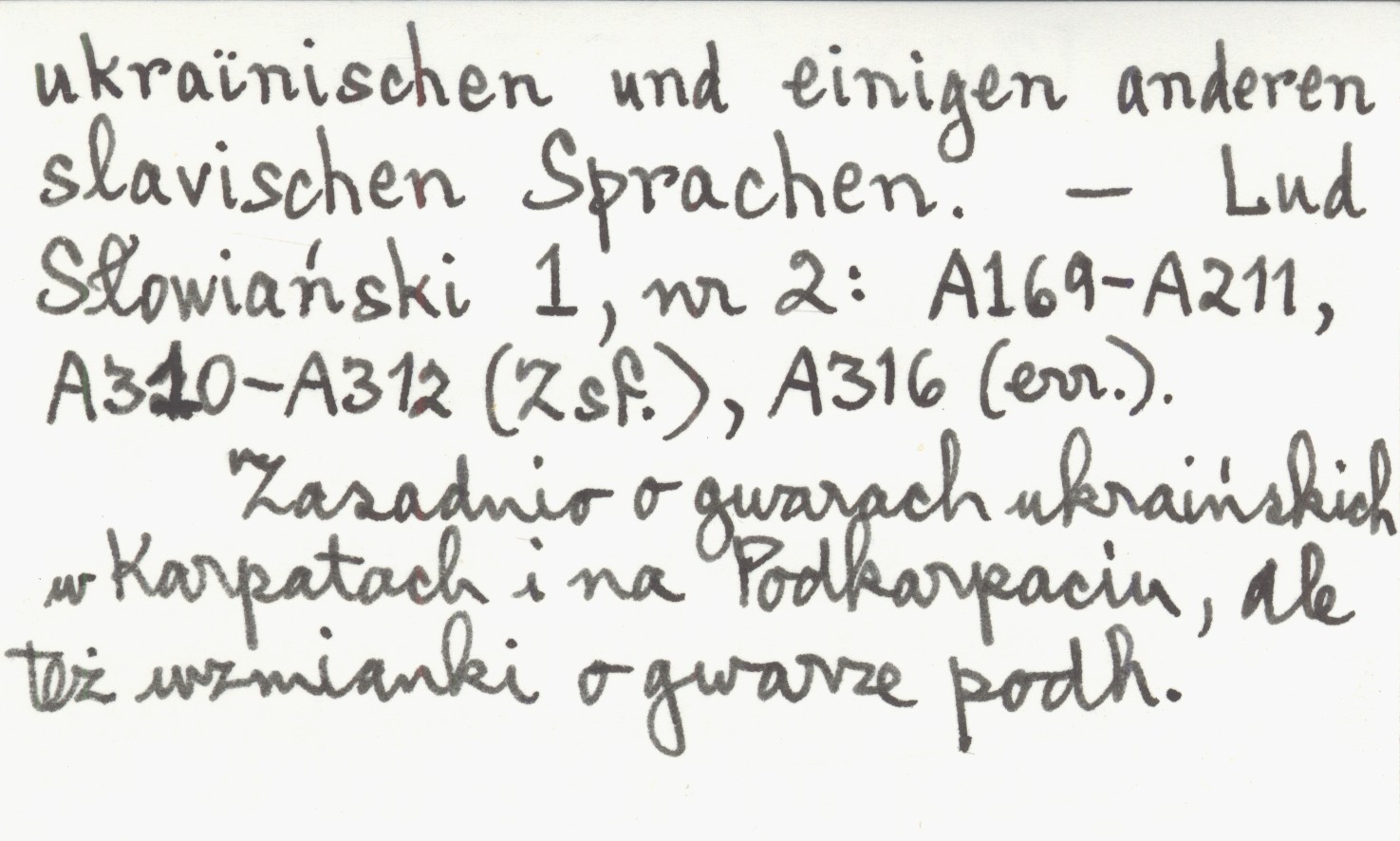 Lud Słowiański, 1, nr 2: A 169-A 211, A 310-A 312 (Zsf.), A 316 (err.). Zasadnio o gwarach ukraińskich w Karpatach i na Podkarpaciu, ale też wzmianki o gwarze podhalańskiej.