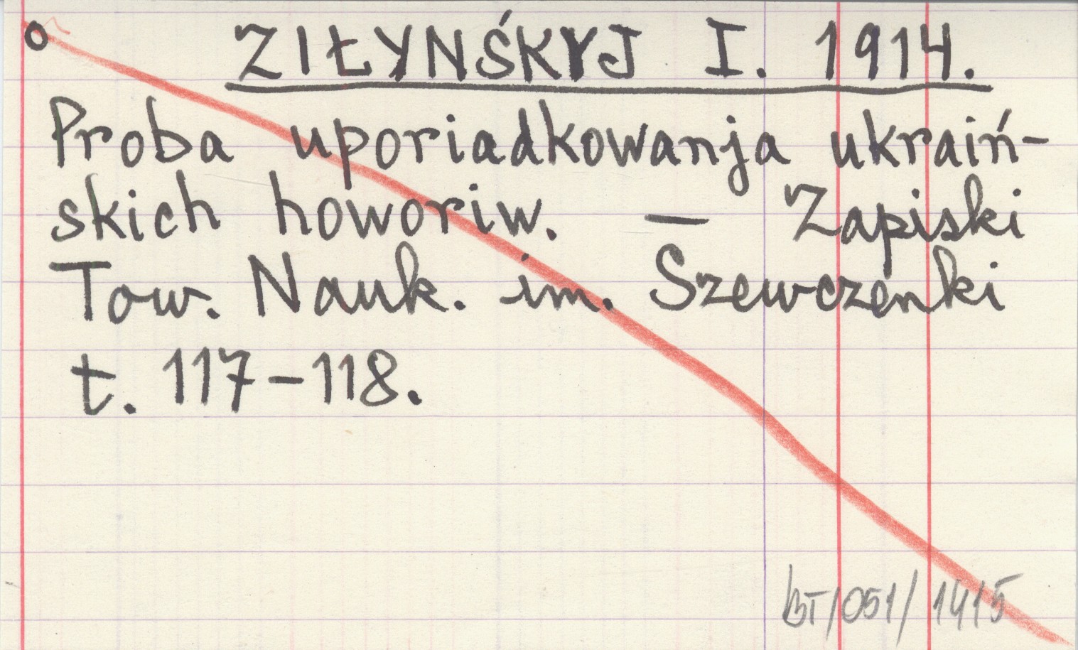 ZIŁYNŚKYJ I. 1914 Proba uporiadkowanja ukraińskich howoriw.