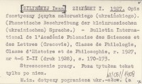 ZIŁYŃSKI I. [ZILYN¦KYJ Iwan] 1927 Opis fonetyczny języka małoruskiego (ukraińskiego). (Phonetische Beschreibung der kleinrussischen (ukrainischen) Sprache).