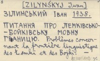 [ZILYN¦KYJ Iwan] 1938 Pitannja pro lemkivs'ko-bojkivs'ky movny granicju. Problémes concernant la frontiére linguistigue des Łemki et des Bojki.