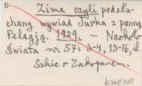 Zima czyli podsłuchany wywiad Jurka z panną Pelagją. 1929