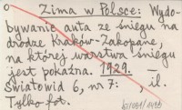 Zima w Polsce: Wydobywanie auta ze śniegu na drodze Kraków - Zakopane, na której warstwa śniegu jest pokaźna. 1929