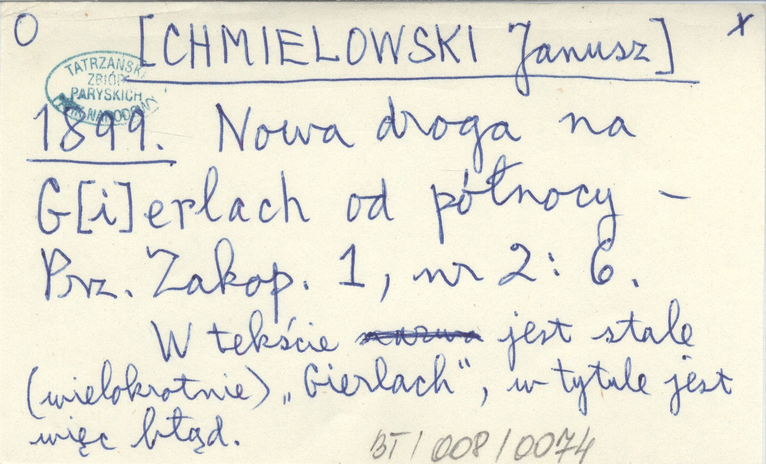 Przegląd Zakopiański, 1, nr 2: 6. W tekście jest stale (wielokrotnie) "Gierlach", w tytule jest więc błąd.