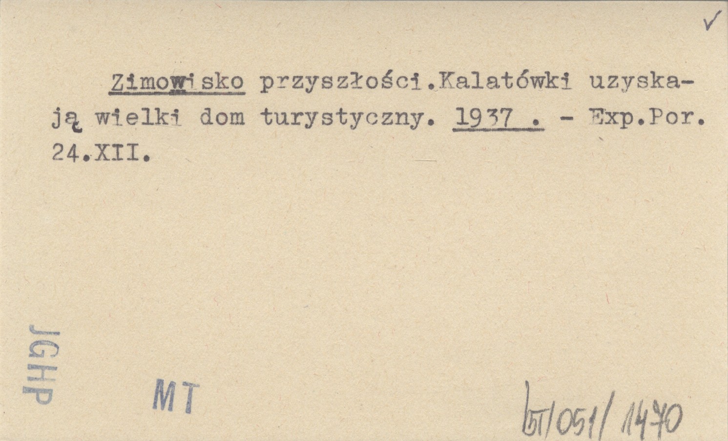 Zimowisko przyszłości. Kalatówki uzyskają wielki dom turystyczny. 1937