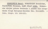 ZINKIEWICZ Karol ROMANISZYN, Bronisław. ; BŁACHOWSKI, Klemens. ; RAMS, Józef. ; 1930 Ustalenie miejsc poboru kamienia i pisaku dla utrzymania drogi Zakopane - Morskie Oko. Protokół.
