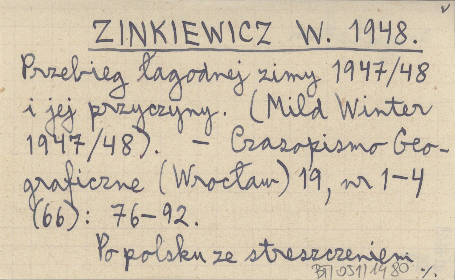 ZINKIEWICZ W. 1948 Przebieg łagodnej zimy 1947/48 i jej przyczyny. (Mild Winter 1947/48).