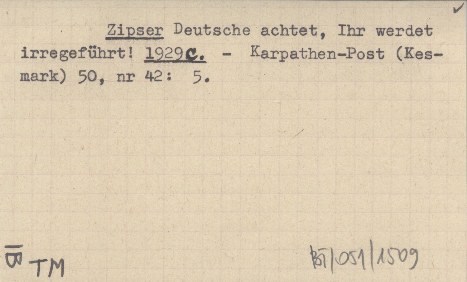Zipser Deutsche achtet, Ihr werdet irregeführt! 1929 c