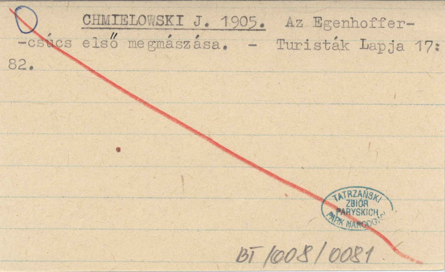 CHMIELOWSKI J. 1905 Az Egenhoffercsúcs első megmászása.