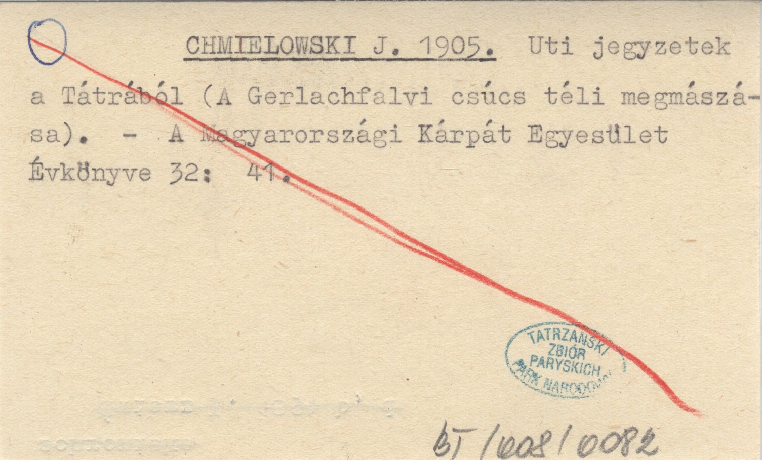 CHMIELOWSKI J. 1905 Uti jegyzetek a Tátrából (A Gerlachfalvi csúcs téli megmászása).