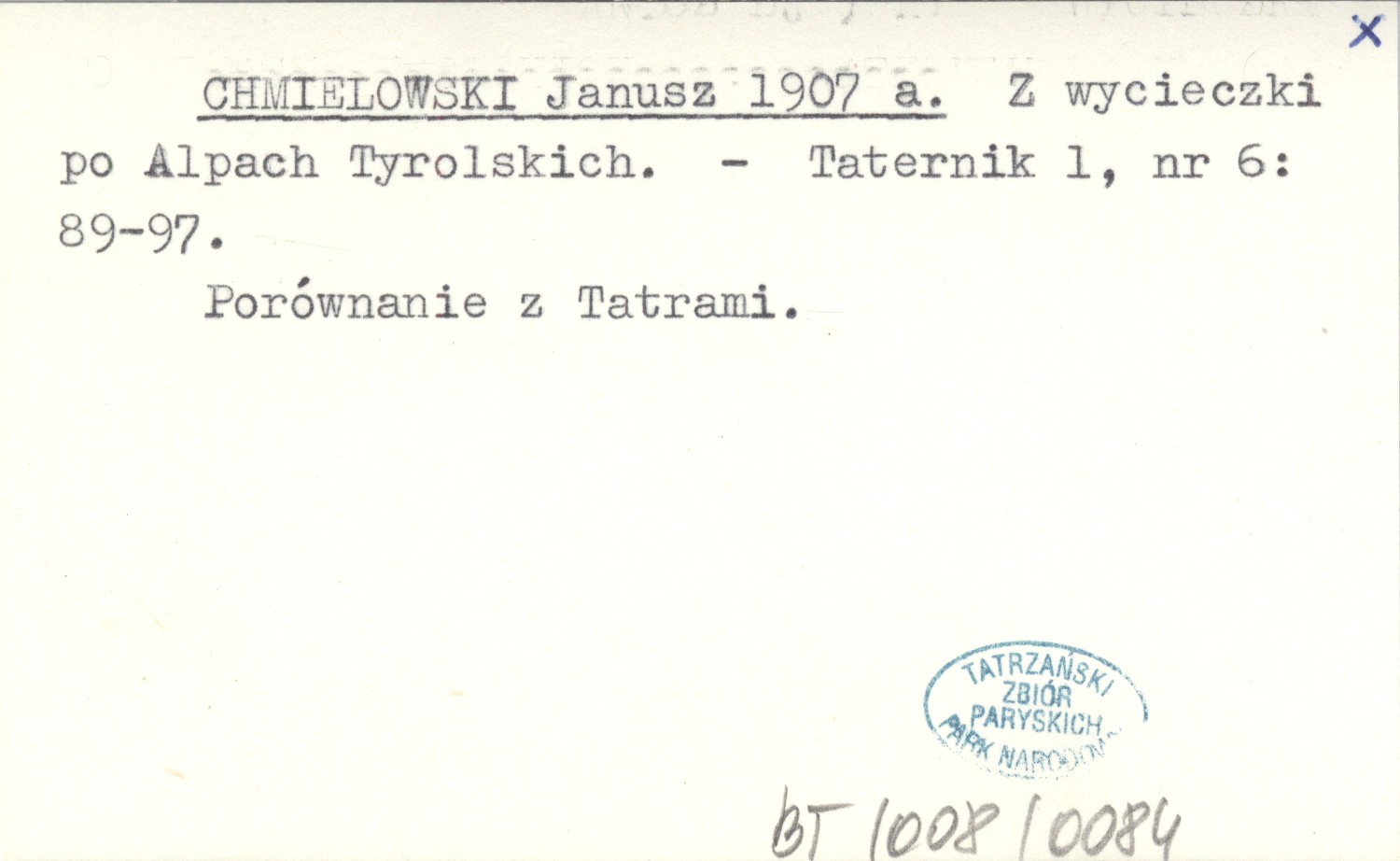 CHMIELOWSKI Janusz 1907 a Z wycieczki po Alpach Tyrolskich.