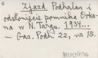 Zjazd Podhalan i odsłonięcie pomnika Orkana w N. Targu. 1934...