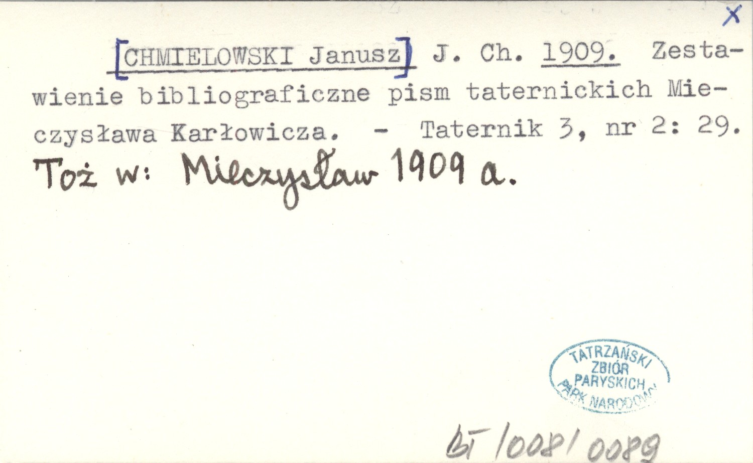 Zestawienie bibliograficzne pism taternickich Mieczysława Karłowicza.