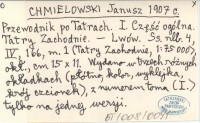 CHMIELOWSKI Janusz 1907 c Przewodnik po Tatrach. I. Część ogólna. Tatry Zachodnie.