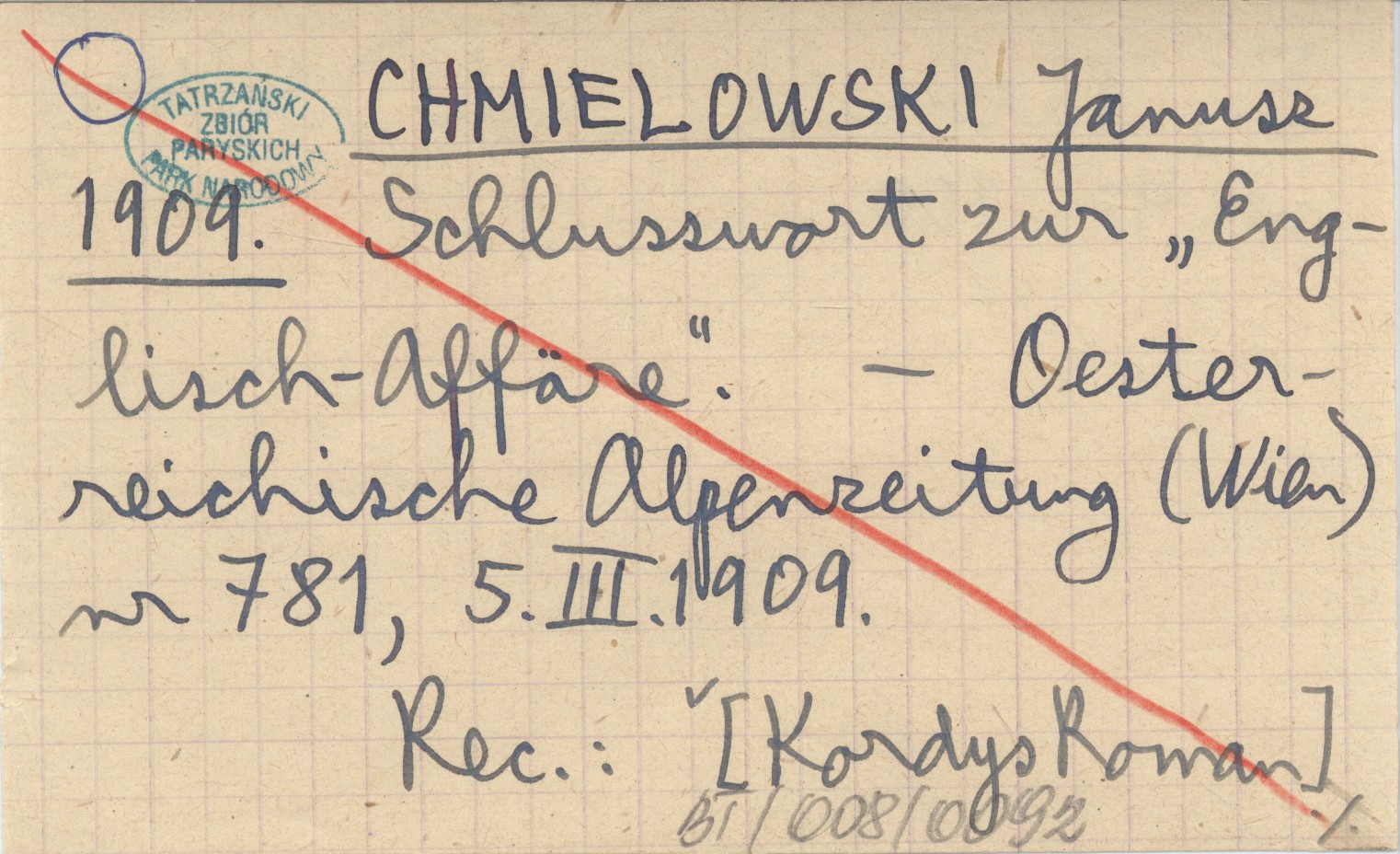 CHMIELOWSKI Janusz 1909 Schlusswort zur "Englisch-affäre".