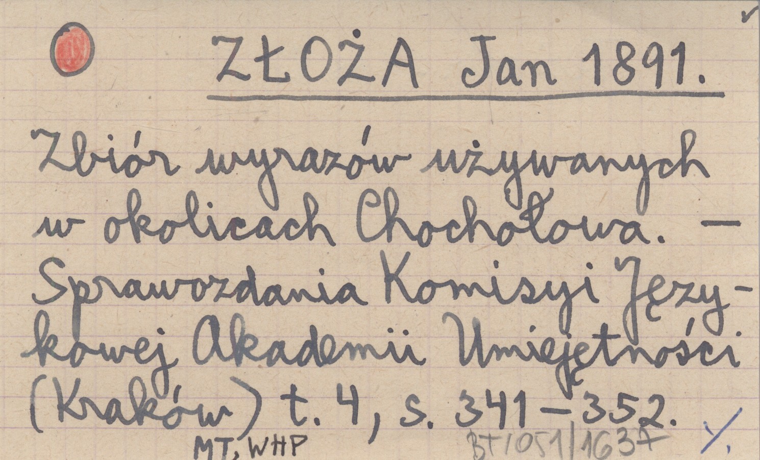 ZŁOŻA Jan 1891 Zbiór wyrazów używanych w okolicach Chochołowa.