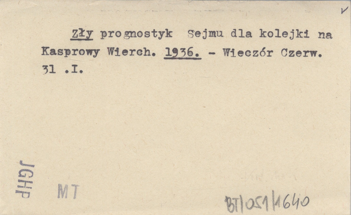 Zły prognostyk Sejmu dla kolejki na Kasprowy Wierch. 1936
