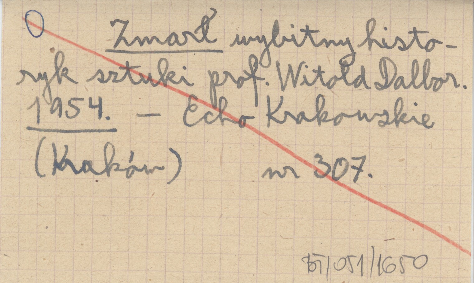 Zmarł wybitny historyk sztuki prof. Witold Dalbor. 1954