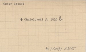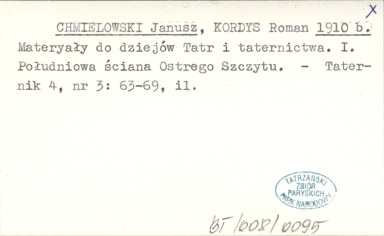 CHMIELOWSKI Janusz KORDYS, Roman. ; 1910 b Materyały do dziejów Tatr i taternictwa. I. Południowa ściana Ostrego Szczytu.