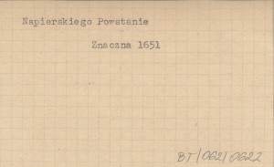 , Wyjątek z instrukcji danej posłom na sejm z sejmiku wiszeńskiego ziem ruskich, w Wiszni, 15 XII 1651. Drukowano w pozycjach: 1. Akta grodzkie i ziemskie, t. 21, wydał Antoni Prochaska, Lwów 1911: 90. 2. Przyboś A. 1951: 96-97, wyjątek dotyczący Powstania Kostki Napierskiego.
