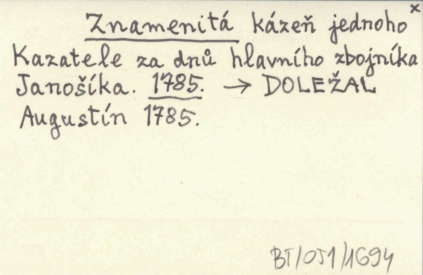 Znamenitá kázeň jedneho Kazatele za dnů hlavního zbojníka Janošíka. 1785