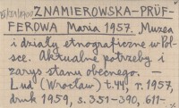 ZNAMIEROWSKA-PRÜFFEROWA Maria 1957 Muzea i działy etnograficzne w Polsce. Aktualne potrzeby i zarys stanu obecnego.